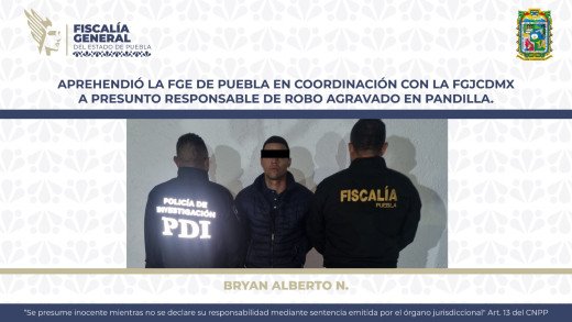 La Fiscalía General del Estado de Puebla, en coordinación con la Fiscalía General de Justicia de la Ciudad de México, dio cumplimiento al mandamiento de captura decretado en contra de Bryan Alberto N., por su probable responsabilidad en el delito de robo agravado en pandilla.