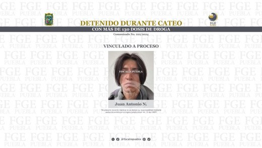 Durante la audiencia inicial, la Fiscalía General del Estado de Puebla formuló imputación y logró que se calificara de legal la detención obteniendo la vinculación a proceso por delitos contra la salud en la modalidad de posesión simple, y la medida cautelar de prisión preventiva justificada.
