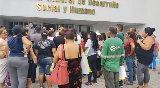 Alrededor de 80 personas se manifestaron en la explanada del edificio de Desarrollo Social cerca de las 11:00 horas de hoy, la mayor parte de los inconformes, personas de la tercera edad y mujeres con niños, exigieron la entrega de apoyos alimentarios ante las afectaciones que han registrado por el resguardo sanitario ordenado por autoridades, dentro de la pandemia del COVID-19.