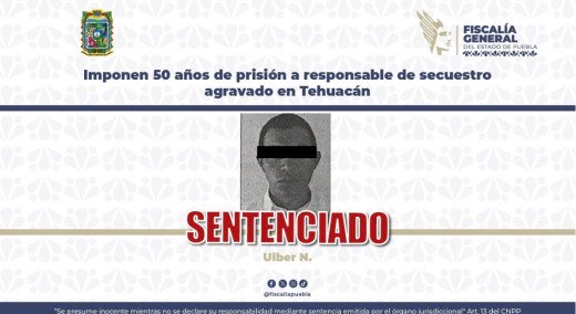 Tras el desahogo del juicio oral, la Fiscalía General del Estado de Puebla (FGE) obtuvo sentencia condenatoria contra Ulber N., de 41 años, por su responsabilidad en el delito de secuestro agravado de un masculino, acto acontecido en el municipio de Tehuacán.