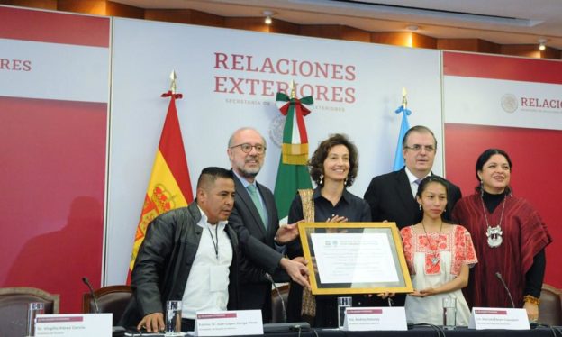 En una ceremonia oficial que se llevó a cabo en ­­­­­­­­­­­­­­­­la Secretaría de Relaciones Exteriores, el documento fue recibido por la secretaria de Cultura del Gobierno de México, Alejandra Frausto Guerrero, y por el canciller, Marcelo Ebrard Casaubon.