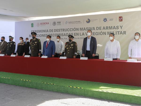 CIUDAD DE PUEBLA, Pue.- Al asistir a la ceremonia de destrucción masiva de armas y municiones decomisadas por la VI Región Militar, el titular del Ejecutivo local, Miguel Barbosa Huerta afirmó que estos programas del Ejército Mexicano demuestran que la vida institucional en el país está funcionando.