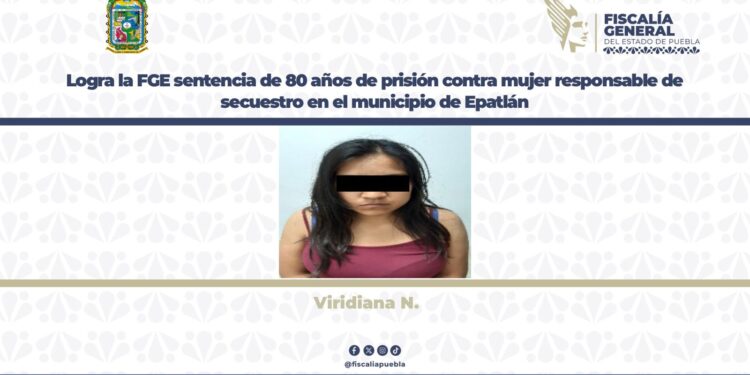La Fiscalía General del Estado de Puebla logró una sentencia de 80 años de prisión contra Viridiana N., al demostrarse su responsabilidad penal en el delito de secuestro agravado cometido en el municipio de Epatlán, Puebla.