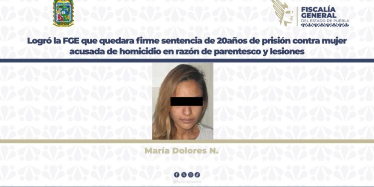 La Fiscalía General del Estado logró que quedara firme la sentencia de 20 años de prisión dictada en contra de María Dolores N., por su responsabilidad penal en la comisión de los delitos de homicidio en razón de parentesco y lesiones.