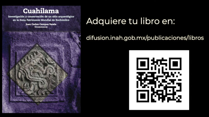 Cuahilama. Investigación y conservación de un sitio arqueológico en la Zona Patrimonio Mundial de Xochimilco está disponible en la red de librerías del INAH, así como en la tienda electrónica de la Coordinación Nacional de Difusión del instituto.