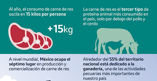 Ciudad de México.- Alrededor del 55% del territorio nacional está dedicado a la ganadería1, una de las actividades pecuarias más importantes de nuestro país, que incluso a nivel mundial tiene un gran impacto; México destaca entre 235 países, posicionándose en el séptimo lugar del mundo en producción y comercialización de carne de bovino2.