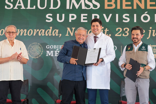 En la supervisión del Plan de Salud IMSS Bienestar en Rosamorada, el mandatario reiteró que los empleados del sector salud tienen garantizados sus derechos y, al mismo tiempo, el Gobierno de México fortalece el sistema sanitario público.