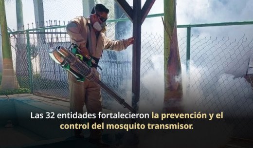 Durante la semana del 23 al 27 de marzo, se fortalecieron las acciones intensivas de prevención y control vectorial en todo el país, es así como se activaron el 100 por ciento de los Comités Estatales Intersectoriales, se amplió la movilización comunitaria mediante la eliminación masiva de criaderos e implementaron campañas de comunicación de riesgos en todo el territorio nacional en la que participaron organismos de salud, educación, turismo, bienestar, gobiernos municipales y sociedad civil.