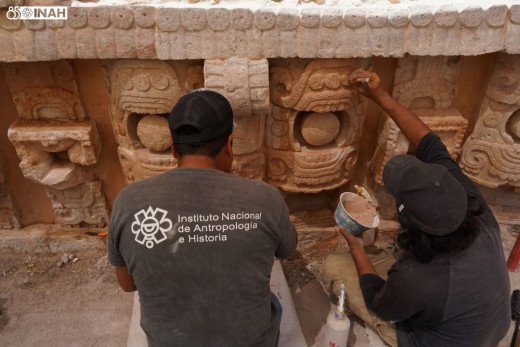 Galardonado con el Premio INAH 2024 Paul Coremans, en la categoría de Conservación de Bienes Muebles, el proyecto de restauración y conservación de los mascarones de piedra de la Estructura 2C6, denominada Codz Pop, datada en el periodo Clásico Tardío (siglo IX d.C.), de la Zona Arqueológica de Kabah, al suroeste de Yucatán, atendió 5,400 piezas de piedra labrada que conforman 161 mascarones de Witz, el dios maya de la montaña sagrada.