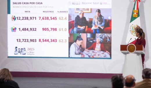 En el Día Internacional de la Enfermería, la Presidenta de México, Claudia Sheinbaum Pardo, resaltó que, hasta la fecha, a través del Censo Salud y Bienestar del programa Salud Casa por Casa se ha visitado a 8.5 millones de adultos mayores y personas con discapacidad, lo que representa un avance del 62.3 por ciento respecto a la meta total.