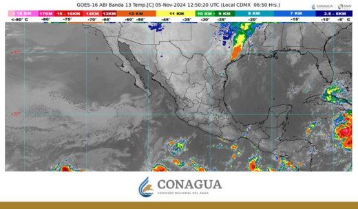 En contraste, se mantendrá el ambiente vespertino de caluroso a muy caluroso en entidades del litoral del Pacífico, así como del oriente y sureste del territorio mexicano y la península de Yucatán; se pronostican temperaturas máximas de 35 a 40 grados en Campeche, Chiapas, Colima, Guerrero, Jalisco, Michoacán, Nayarit, Oaxaca, Sinaloa y Yucatán, y de 30 a 35 grados en Morelos, Quintana Roo, Tabasco y Veracruz.