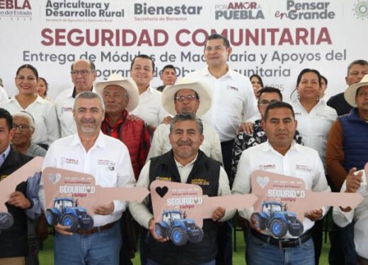 SAN MARTÍN TEXMELUCAN, Pue.- Con la visión de generar seguridad en el campo para el bienestar de las familias, el Gobernador de Estado, Alejandro Armenta, encabezó la entrega de un módulo de maquinaria en la región como parte de los 27 que se entregan en la entidad y que lograrán que este año se siembren 150 mil hectáreas que no producían.