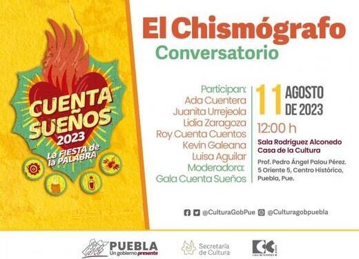 CIUDAD DE PUEBLA, Pue. – En la Casa de la Cultura “Profesor Pedro Ángel Palou Pérez”, el gobierno presente de Sergio Salomón, a través de la Secretaría de Cultura, presentará este viernes 11 de agosto tres actividades enmarcadas en la segunda edición del Festival Internacional de Narración Oral “Cuenta Sueños 2023. La fiesta de la palabra”.
