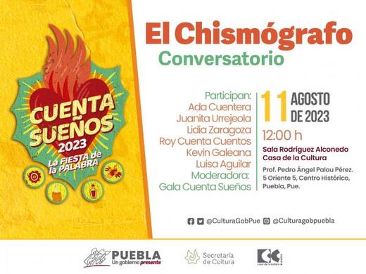 Al recinto, ubicado en la 5 Oriente número 5 del Centro Histórico, podrá ingresar el público en general de forma gratuita. Para más información, las y los interesados pueden consultar las páginas de Facebook: “Casa de la Cultura de Puebla” y “Cuenta Sueños. Fiesta de la Palabra”.