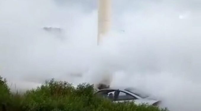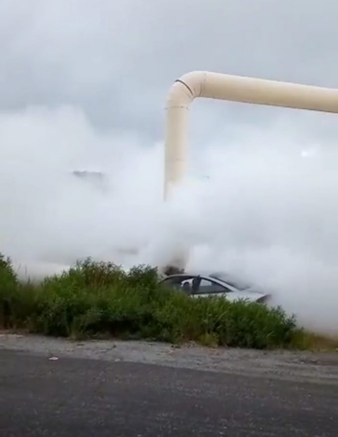 El percance ocurrió cuando un automóvil tipo Cavalier de la marca Chevrolet se impactó contra parte de la tubería de dichas instalaciones.